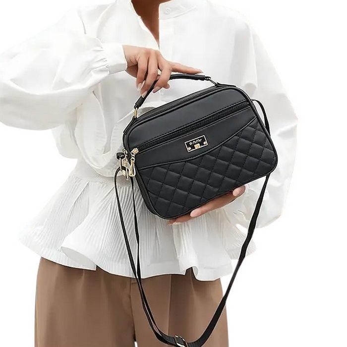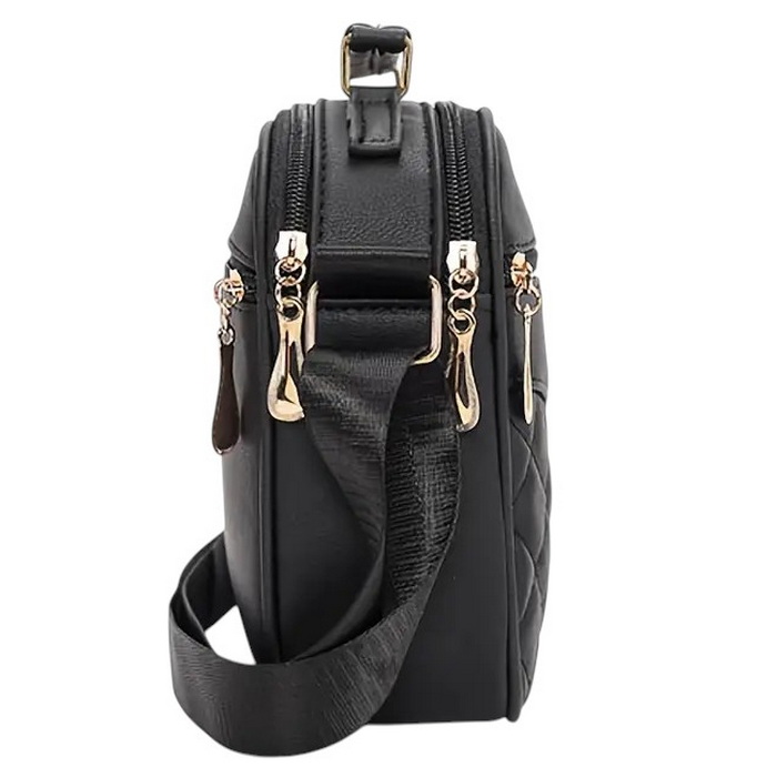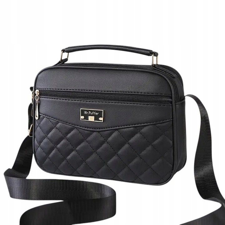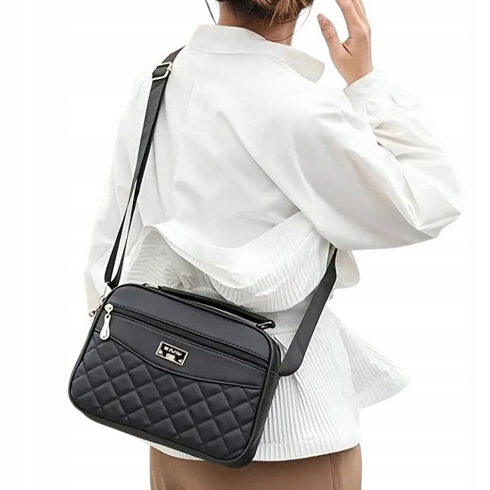 Poznaj wyjątkową torebkę listonoszkę w ponadczasowym, czarnym kolorze. Uszyta z wysokiej jakości skóry ekologicznej, która zapewnia trwałość i komfort noszenia. Pikowane wykończenie dodaje jej klasy oraz szykownego charakteru, idealnie komponując się z każdą stylizacją.