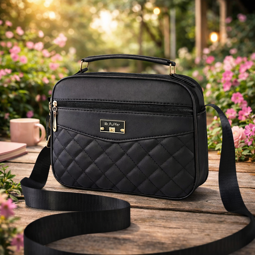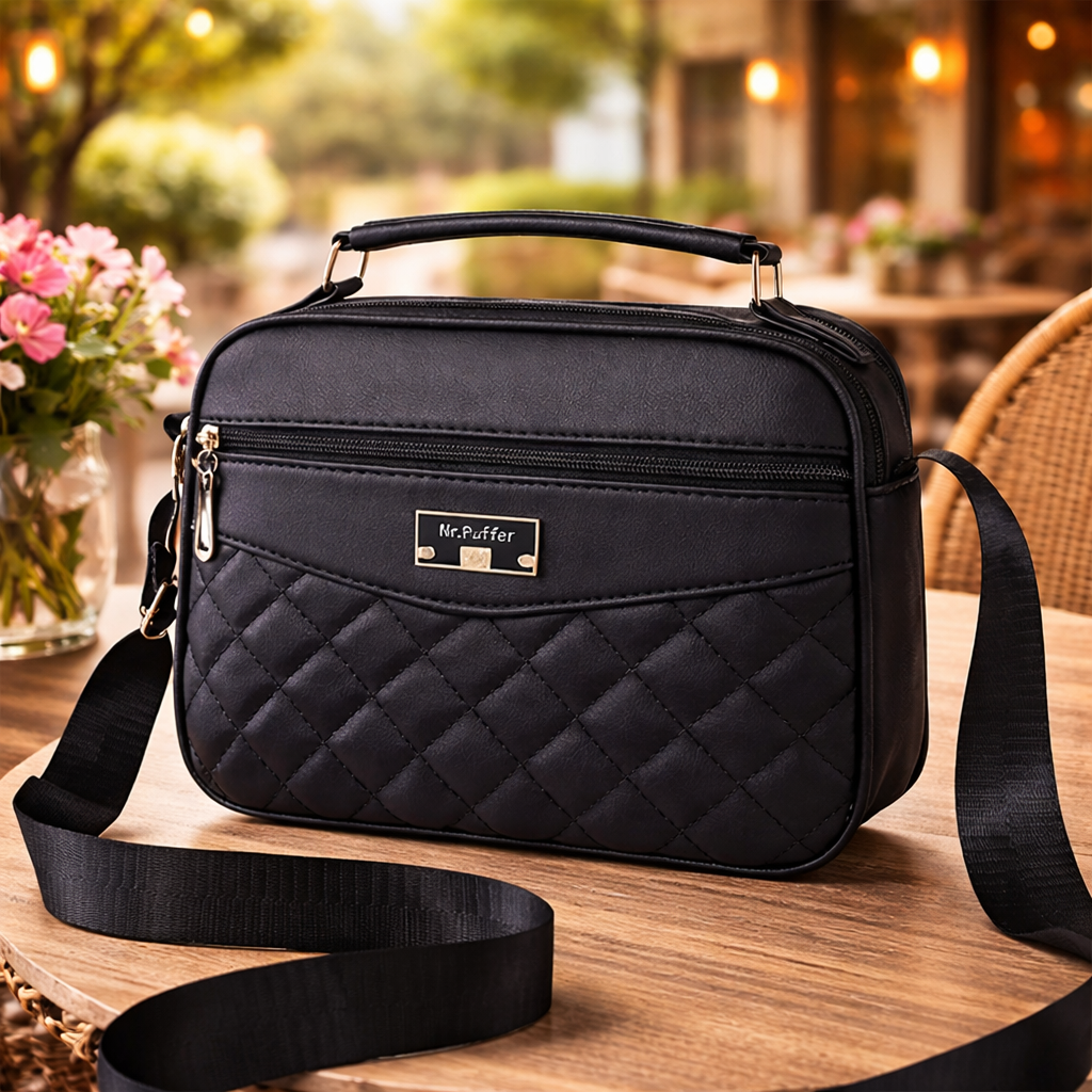 tylowa, pikowana torebka w kolorze głębokiej czerni to must-have każdej garderoby – idealna zarówno na co dzień, jak i na wyjątkowe wyjścia. Klasyczny design w uniwersalnym kolorze sprawia, że pasuje do wielu stylizacji — od casualowych po bardziej formalne.